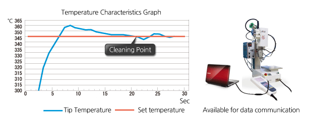 We adopted a soldering part position guarantee system by employing a 4-axis encoder. Point/Slide 500 conditions can be used as the highest soldering condition in the class. |
